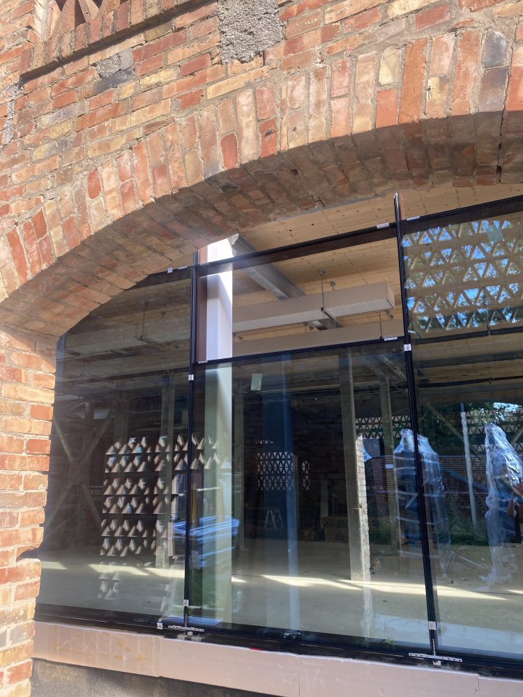 Questo progetto era caratterizzato dalla complessità. Grandi vetrate trapezoidali da calare in spazi ristretti nel mezzo dell’intervento di ristrutturazione. Montanti di facciata lunghissimi hanno comportato relazioni di calcolo di verifica dei montanti da ingegneri specializzati. Esigenze acustiche importanti per separare gli ambienti e certificazioni richieste di 46dB di abbattimento di facciata: abbiamo utilizzato vetri da 49-50dB per raggiungere le prestazioni.